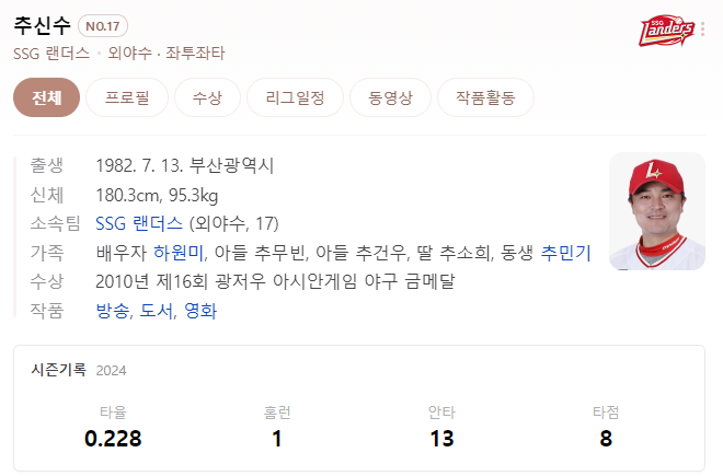 현재 SSG의 팀타율과 팀득점은 저조한 편인데, 추신수의 복귀는 이 성적을 향상시키는데 꽤나 좋은 역할을 기대하고 있다.