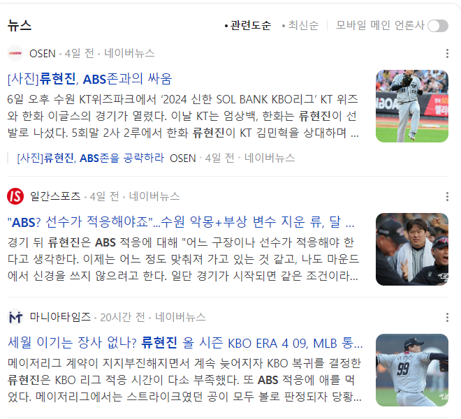 류현진이 복귀한 KBO 리그 첫 해 하필이면 ABS가 처음 적용되는 해였고, 이에 대한 대처가 좋지 못했고, 적응에 시간이 걸렸다는 점이다.