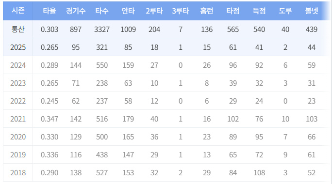 준수한 타율과 두자릿수 홈런을 기록한 것은 26시즌 외야 전력을 구성함에 다양하게 쓰일 수 있는 근거가 될 것이다.